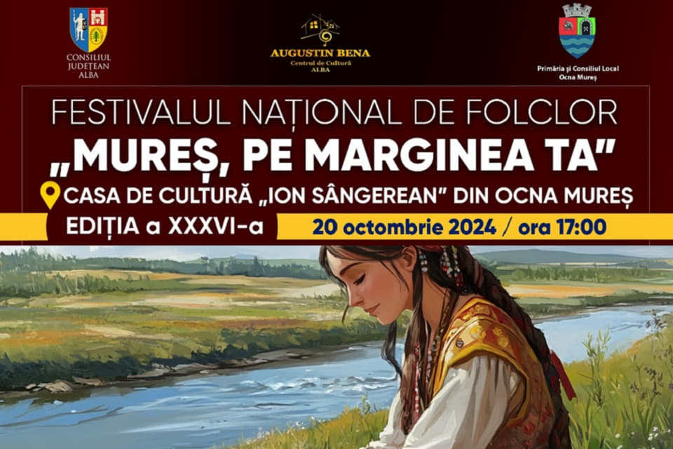 Duminică, 20 octombrie 2024, la Casa de Cultură „Ion Sângerean” din Ocna Mureș, va avea loc cea de-a XXXVI-a ediție a Festivalului Național de Folclor „Mureș, pe marginea ta”, un eveniment de referință în peisajul cultural românesc.