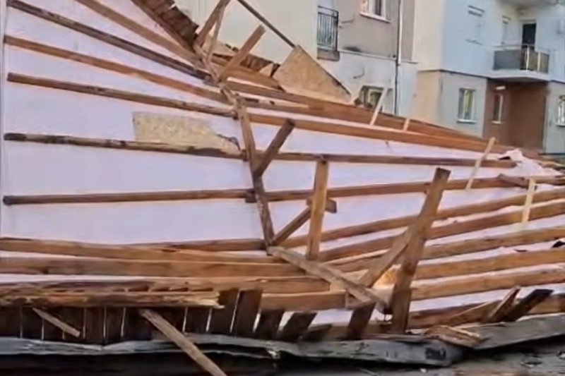 Acoperișul unui bloc de pe strada Axente Sever, doborât de vânt peste trei autoturisme
