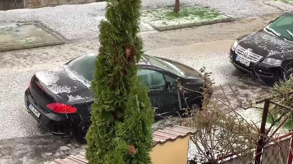 Timp de circa 30 de minute a căzut gheaţă din cer aproape fără întrerupere, iar pe străzi, în grădini şi în curţile oamenilor s-a format un strat de grindină consistent.
