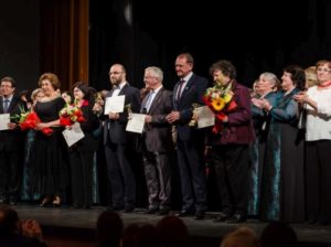 La finalul festivalului, gazdele au premiat dirijorii cu flori, diplome si trofee, invitand pe scena toate corurile, reunite in glasul placut al muzicii!