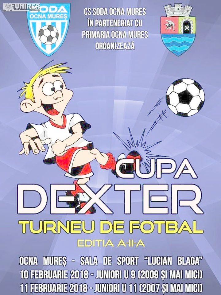 Clubul Sportiv Soda Ocna Mureș organizează la sfârșitul acestei săptămâni cea de-a doua ediție a Cupei Dexter, o atractivă competiție fotbalistică juvenilă, o inițiativă lăudabilă a oficialilor clubului ocnamureșean, în parteneriat cu primăria Ocna Mureș.