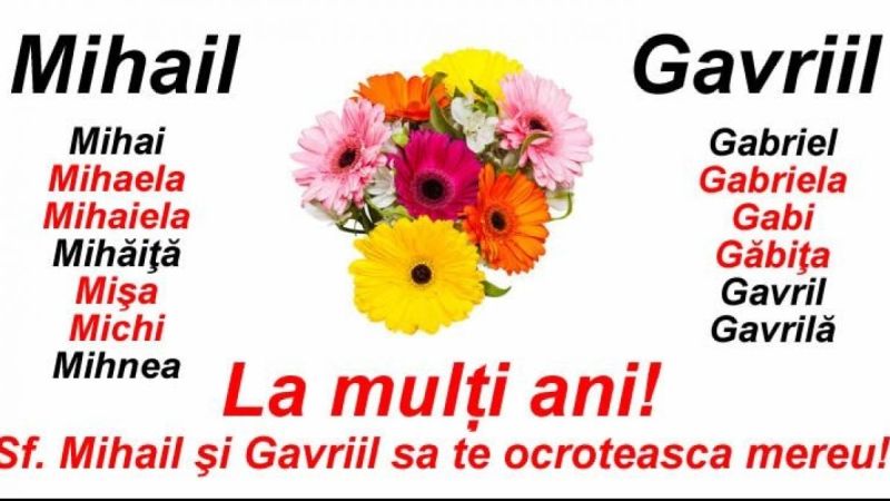 „La mulți ani, de Sfinții Mihail și Gavriil! Să ai parte de multă sănătate, bucurii, împliniri și să te bucuri de această zi frumoasă mereu!”