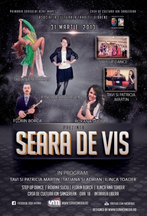 Desfăşurat sub genericul “Seară de Vis”, evenimentul este organizat de Primăria oraşului Ocna Mureş, Casa de Cultură “Ion Sângereanu” şi Asociaţia Culturală “Tradiţii Uiorene”.