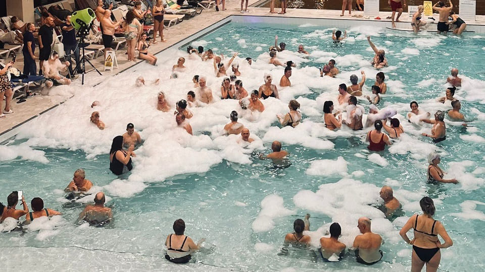 Petrecerea a avut o atmosfera selectă și muzică aleasă, asigurată de Palko Service. Cel mai probabil, și anul acesta deliciul petrecerii a reprezentat-o tunul cu spumă, mai ales că toți au lăsat ringul de dans pentru bălăceala în piscinele interioare, cu apă încălzită ale complexului balnear.