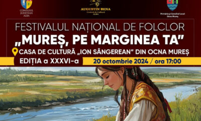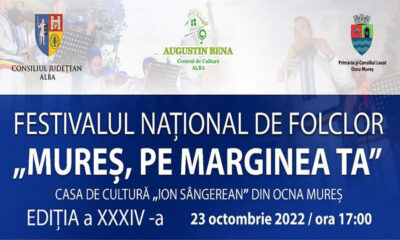 Festivalul național de folclor „Mureș, pe marginea ta”, de la Ocna Mureș, revine cu cea de-a XXXV-a ediție, în data de 22 octombrie 2023, de la...