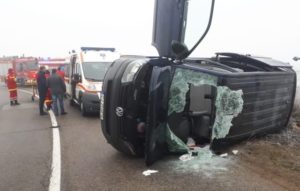 În urma acestuia, un autoturism cu 8 pasageri s-a răsturnat, 5 dintre acestia avand nevoie de îngrijiri medicale. Traficul este îngreunat.