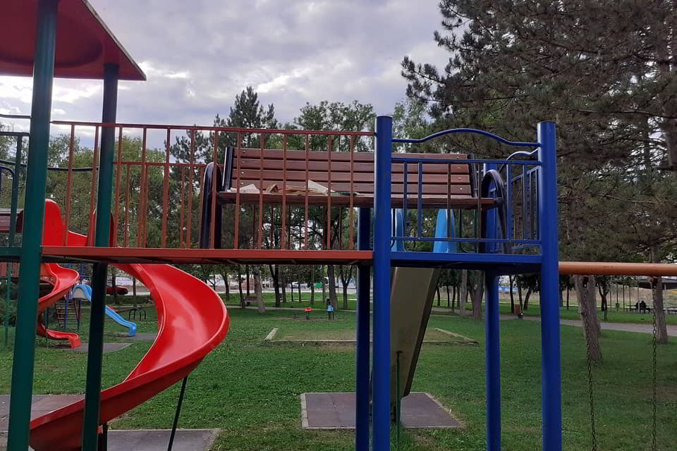 Vandalism în Parcul Mare, din Ocna Mureș: Persoane necunoscute au urcat o bancă pe culoarul de acces al unui tobogan